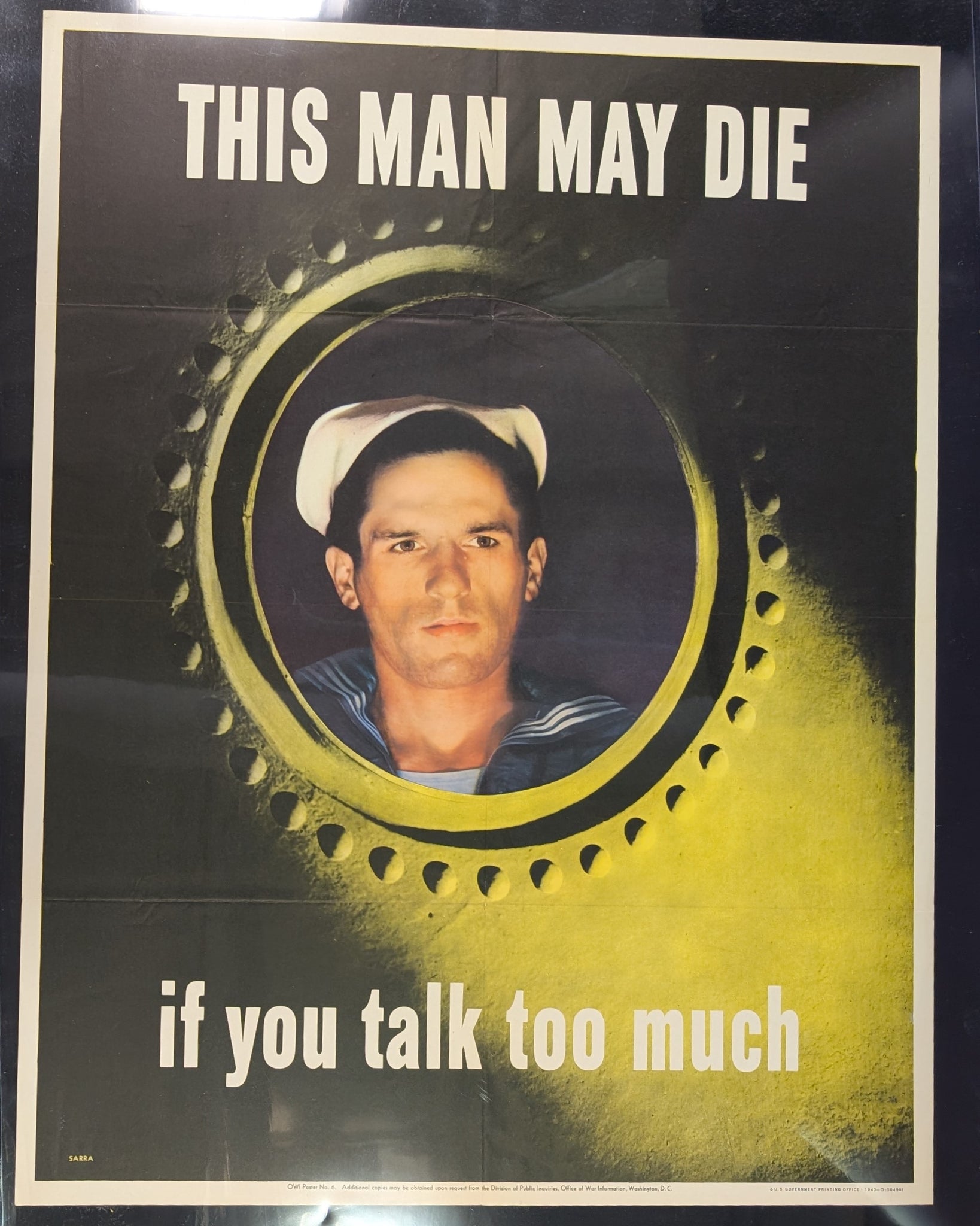 Thank you for viewing our listing for: 1943 WW2 OWI Poster No. 6 This Man May Die If You Talk Too Much - 28x22