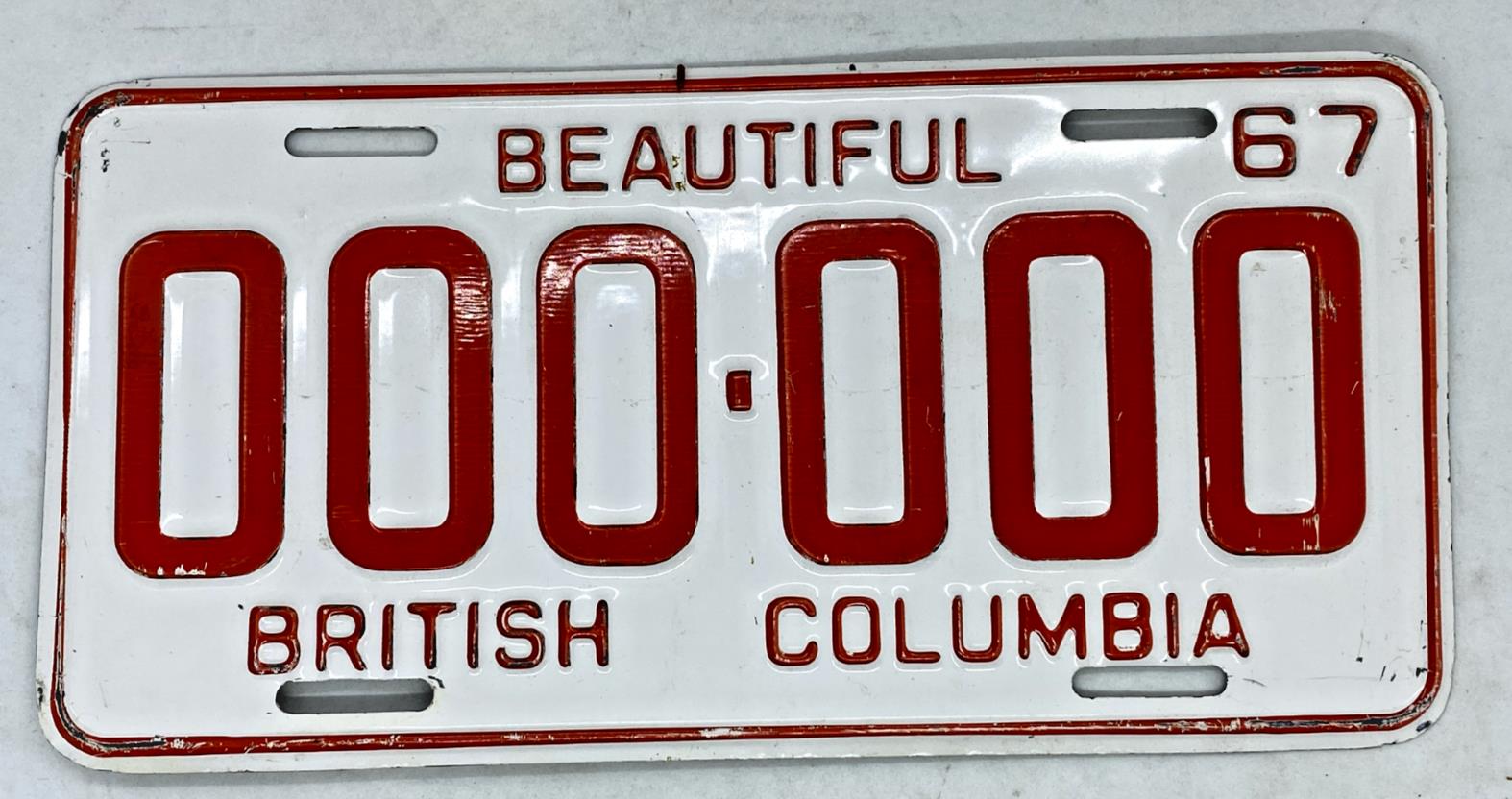 1967 British Columbia ZEROs Sample License Plate** # 000-000 RARE