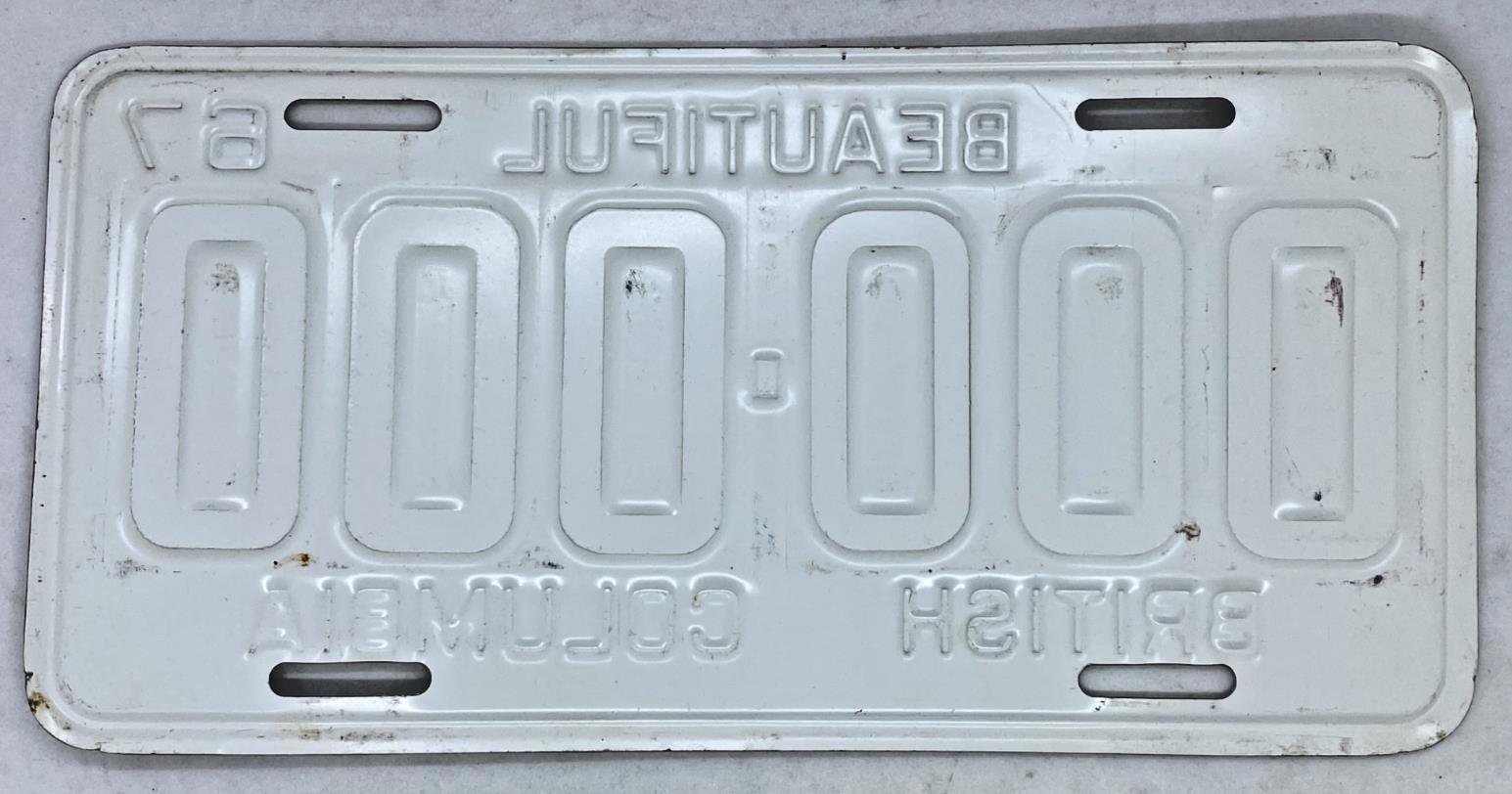 1967 British Columbia ZEROs Sample License Plate # 000-000 RARE