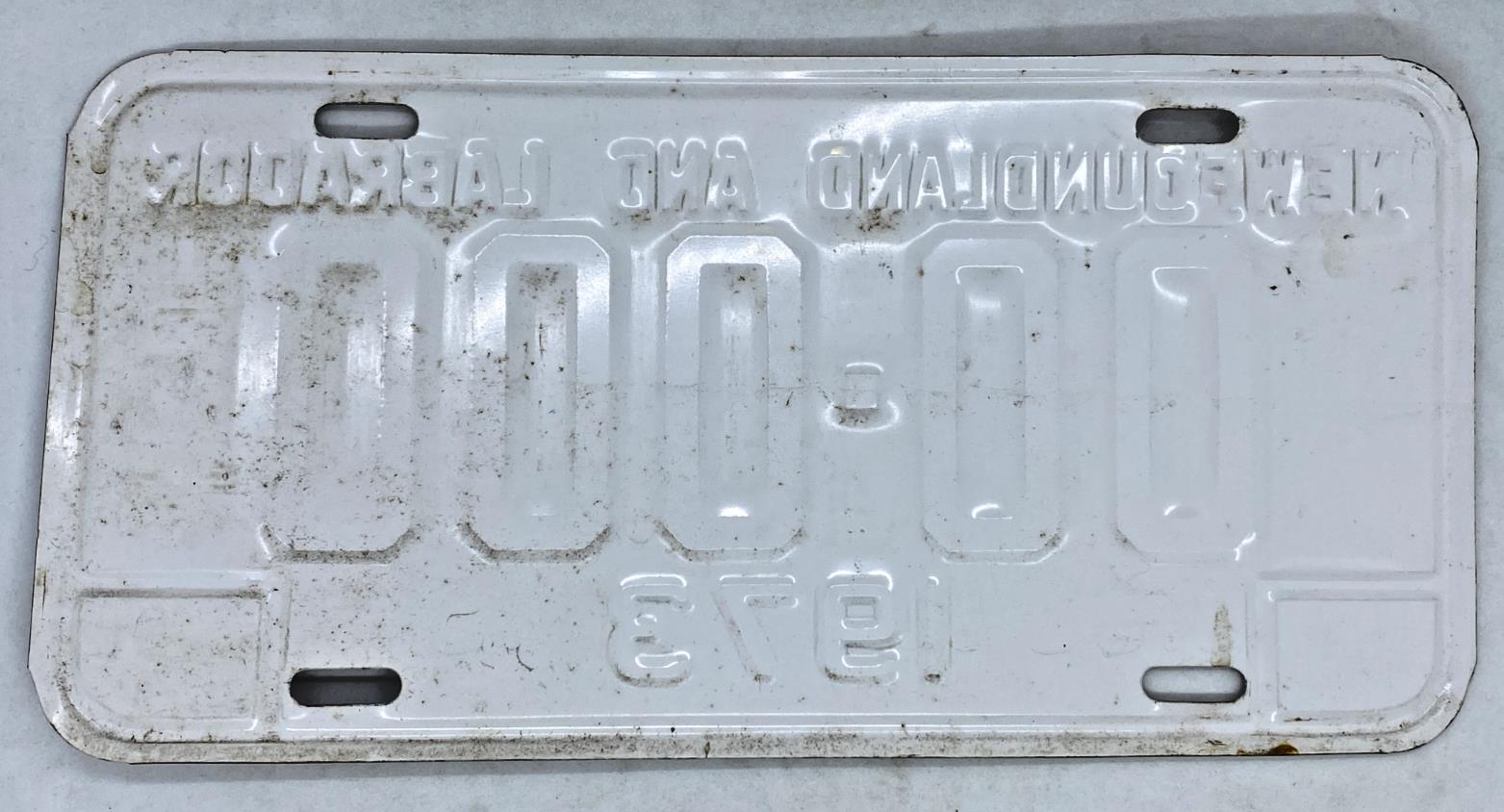 1973 Newfoundland and Labrador Sample License Plate w/ Sticker
