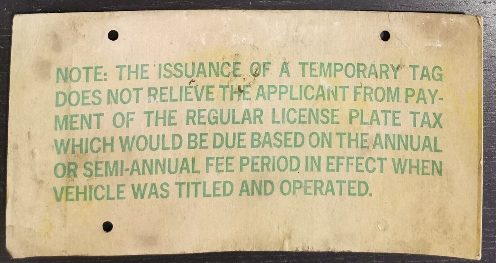 Thank you for viewing our listing for: 1990 Ohio Temporary License Plate A498408
