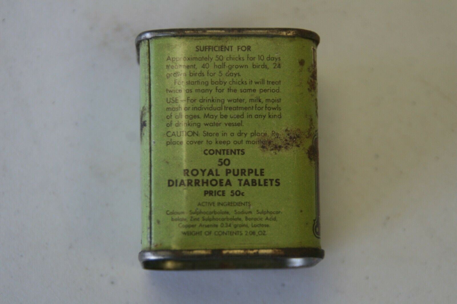 W.A. Jenkins Mfg. Co. Royal Purple Diarrhoea Tablets Tin. Height 2 1/4 inches.