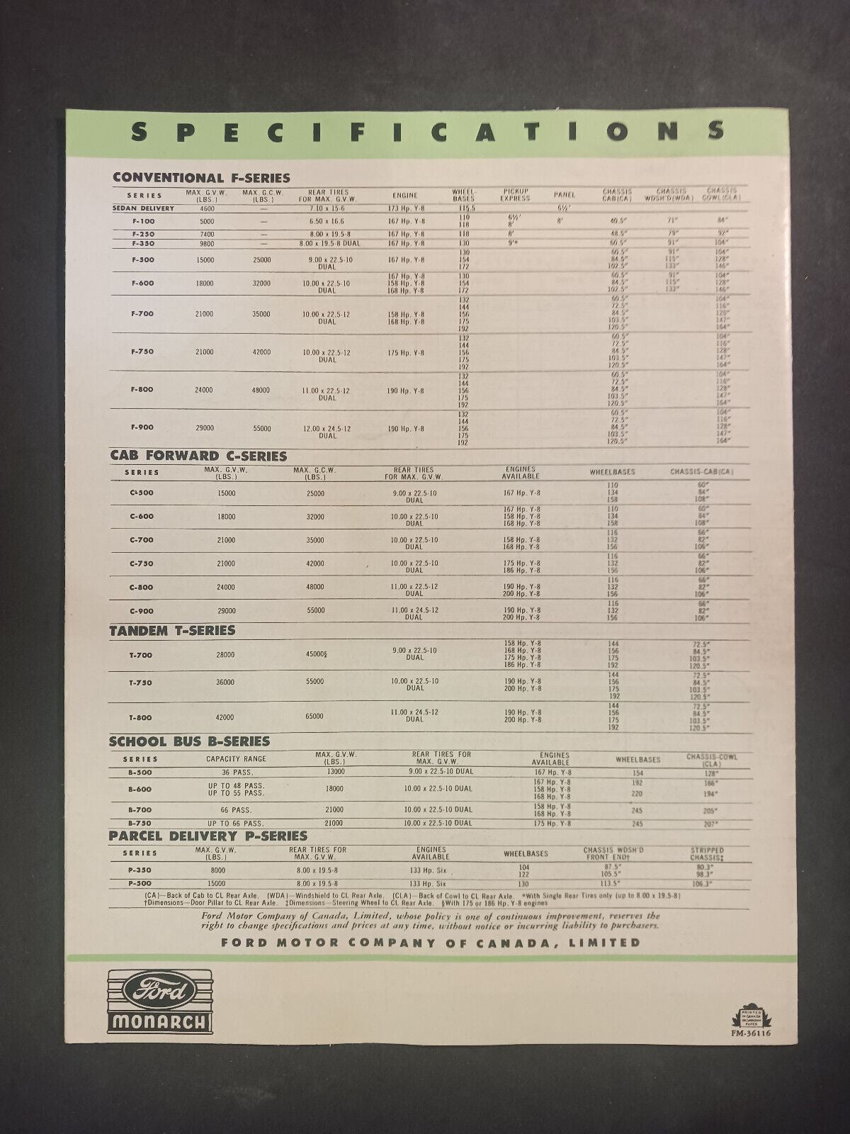 Ford Trucks for 1956 Full-Line Specifications Brochure