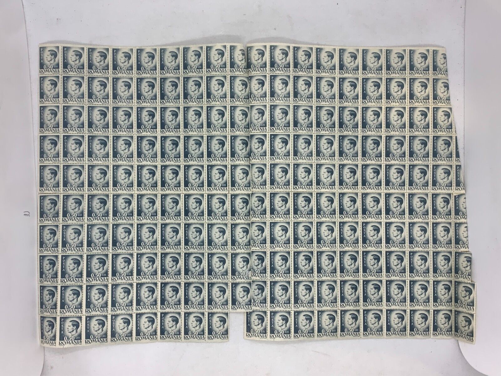INCOMPLETE 10x10 Sheet of 1946 Blue Romanian Stamps - Posta Romana (0.50 Lei)