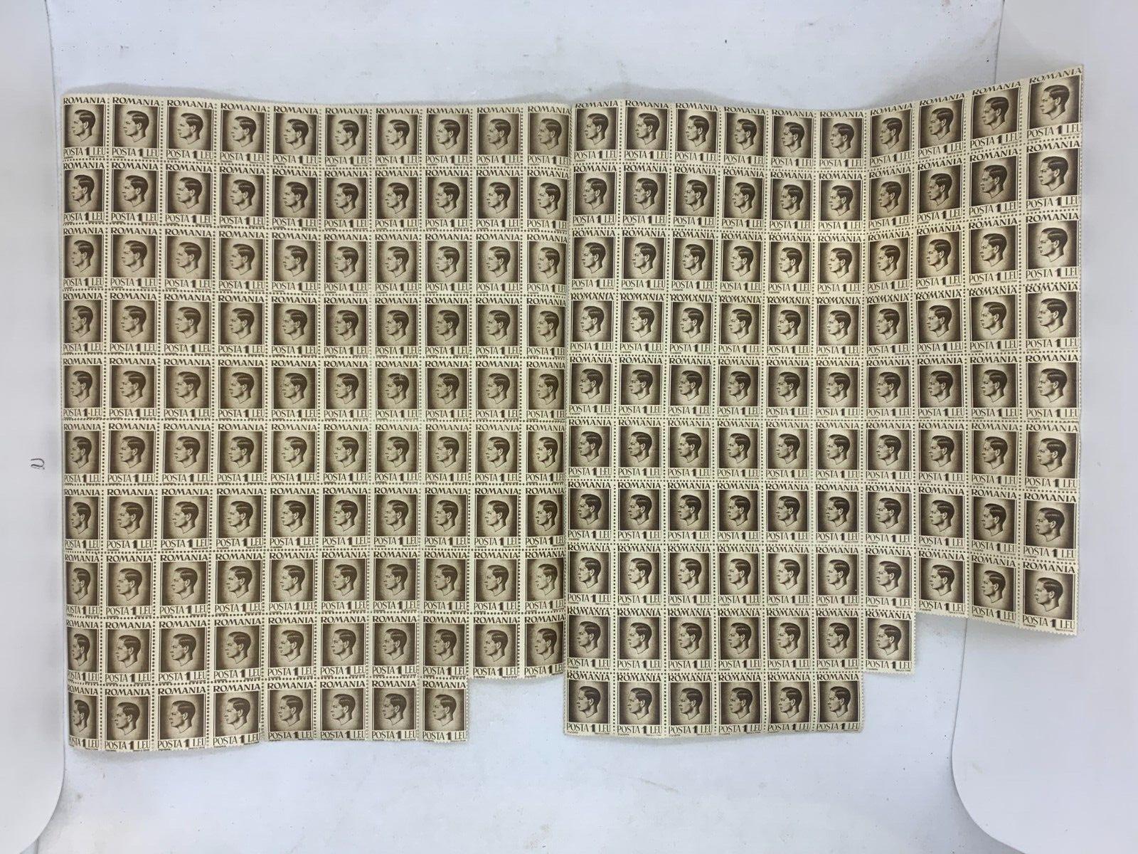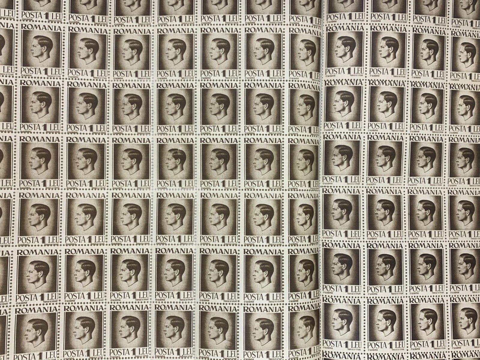 INCOMPLETE 10x10 Sheet of 1946 Brown Romanian Stamps - Posta Romana (1 Lei)