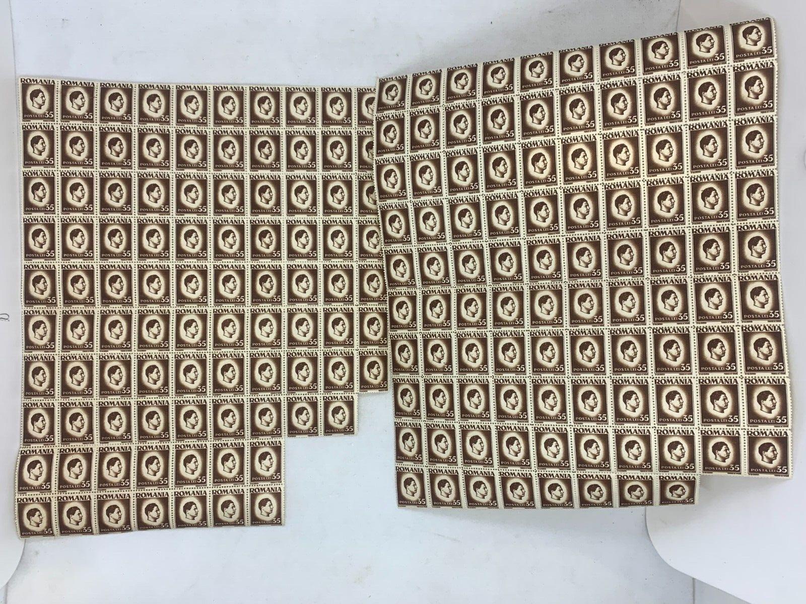 INCOMPLETE 10x10 Sheet of 1946 Brown Romanian Stamps - Posta Romana (35 Lei)