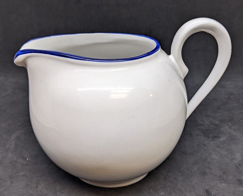 Creamer has Blue Trim -- Measures 6" Spout to Handle x 3.5" High