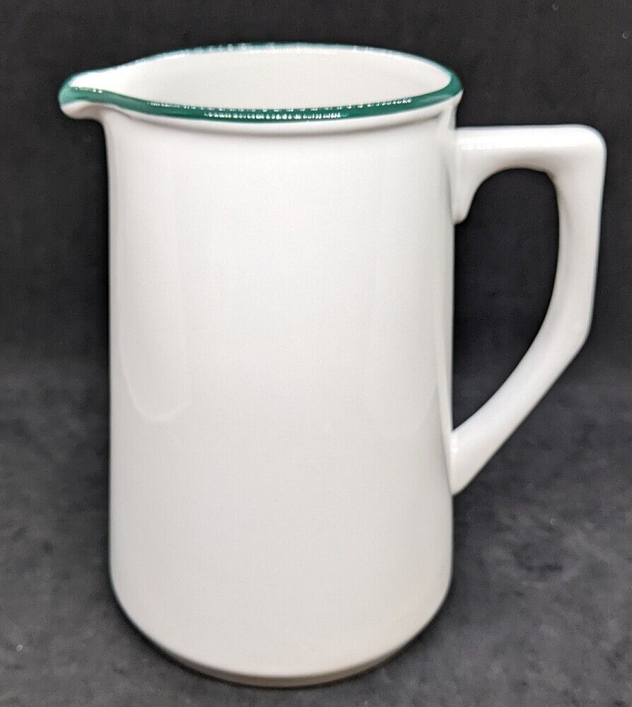 Pitcher has Green Trim -- Measures 5.5" Spout to Handle x 6" High
