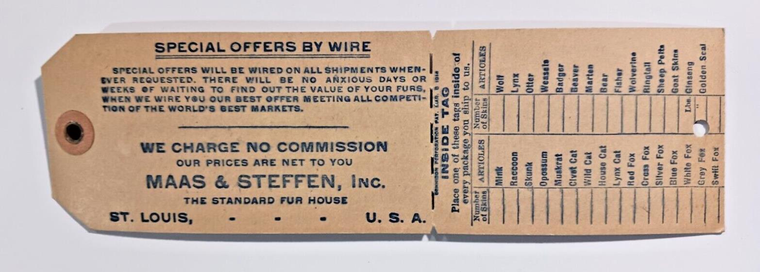 Missouri: St. Louis Maas & Steffen Furs Opening Unmailed Dennison Mailing Tag