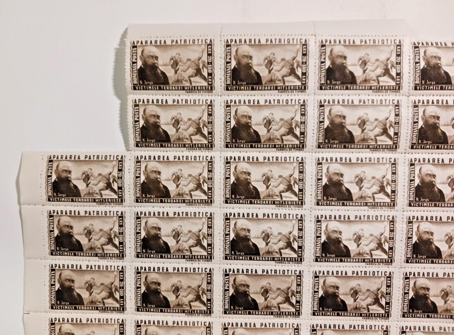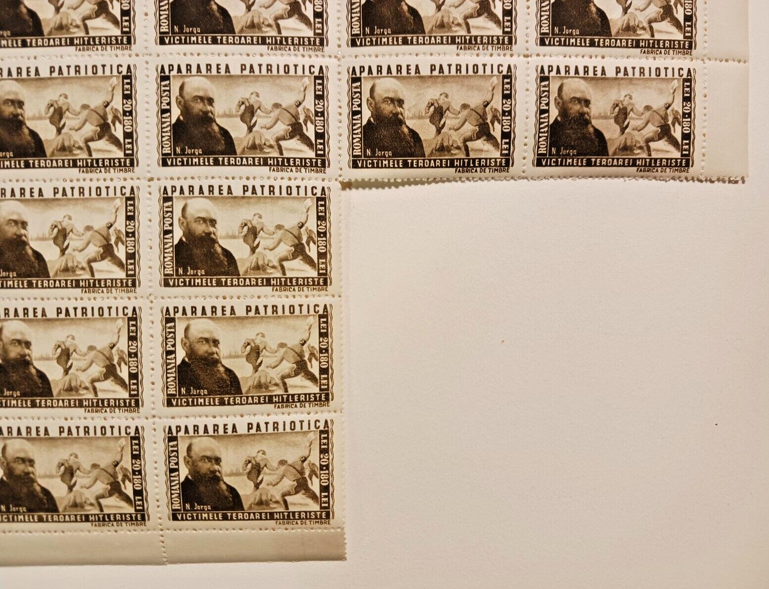 Romania 1945 Apararea Patriotica (TIP A) 10x10 Stamp Sheet (Miss 8) 20+180 LEI