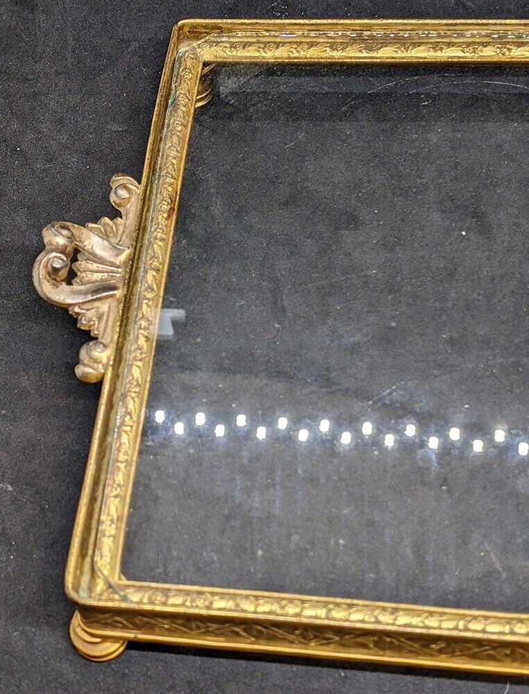 Thank you for viewing our listing for: Small Brass Rimmed Footed Tray With Glass Base - As Is