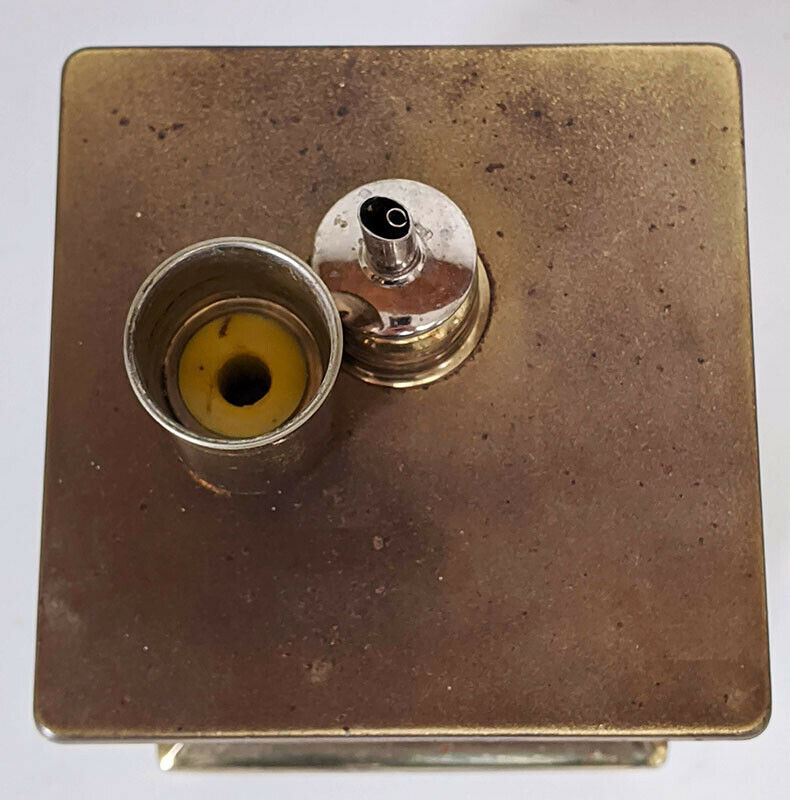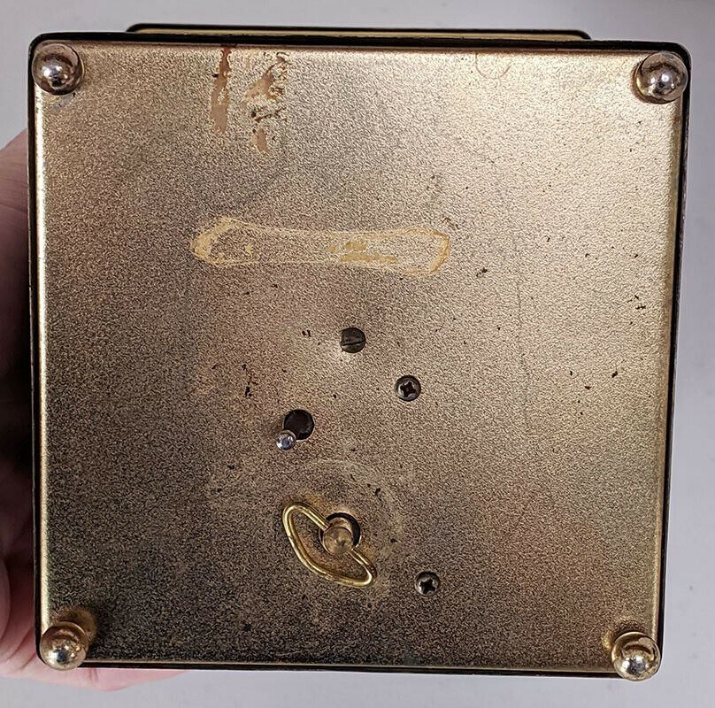 Thank you for viewing our listing for: Vintage Brass, Tin & Iron Music Box & Decanter With The Appearance of a Clock
