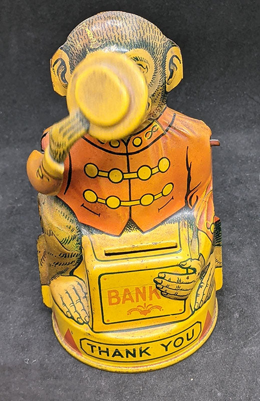 Thank you for viewing our listing for: Vintage J. Chien (USA) Tin Monkey Tipping Hat Coin Bank