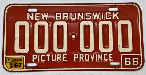 1966 New Brunswick SAMPLE ZERO License Plate Tag Original