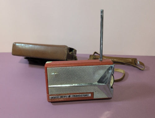 Vintage Kipco Hi-Fi 8 Transistor Radio Red with Leather Case