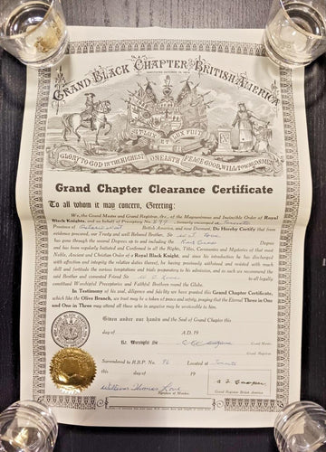 1874 Grand Black Chapter British America Clearance Certificate Blank