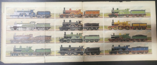 19th century Railway Locomotives, rare 1890s Chromolithographic Print