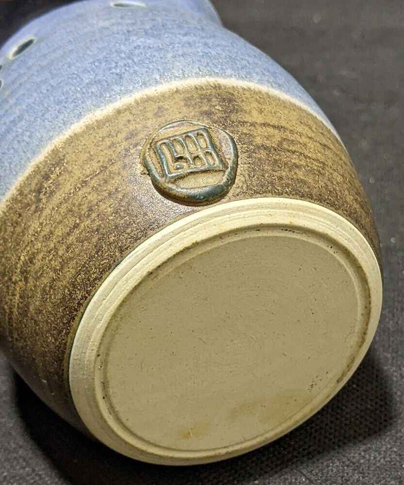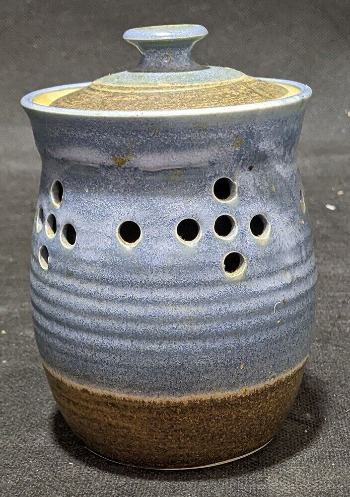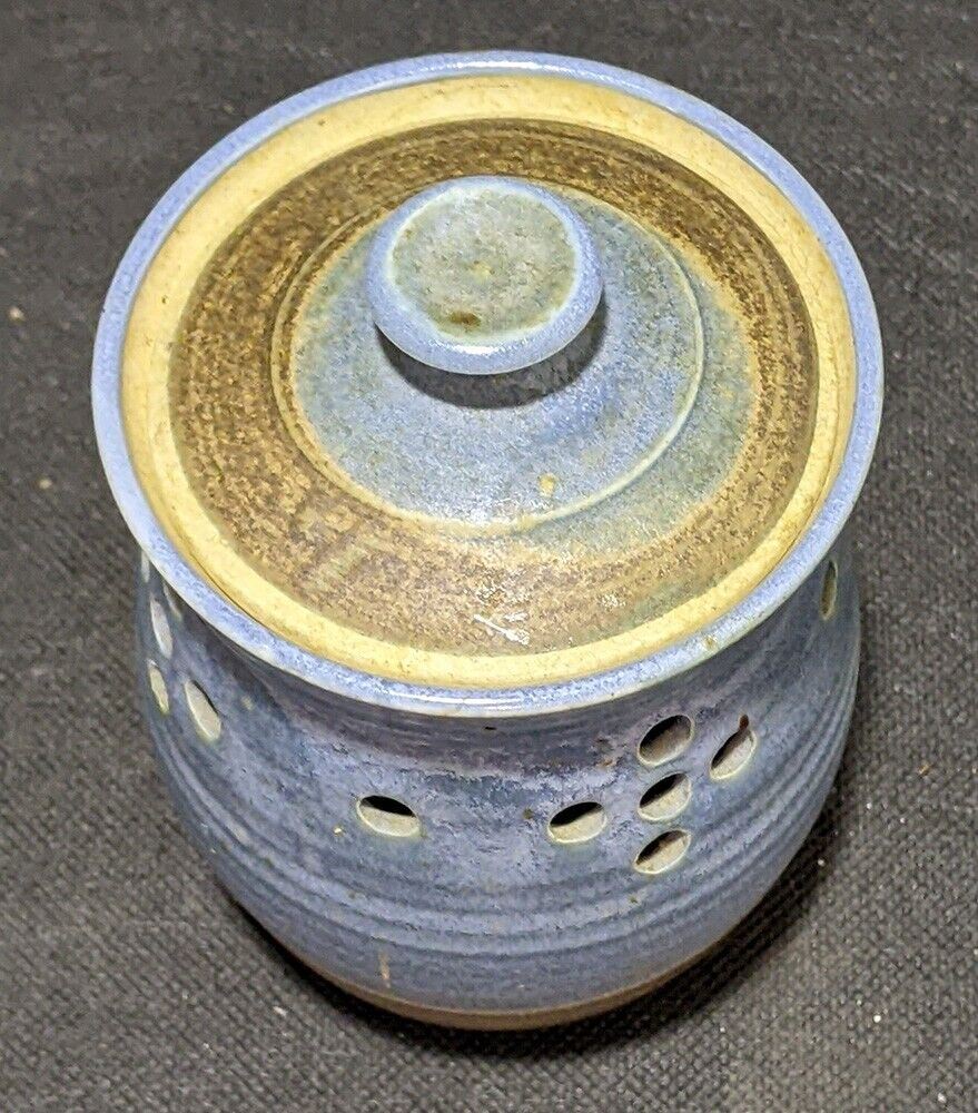 Thank you for viewing our listing for: Beautiful Earth Tone Blue & Brown Pottery Garlic Jar