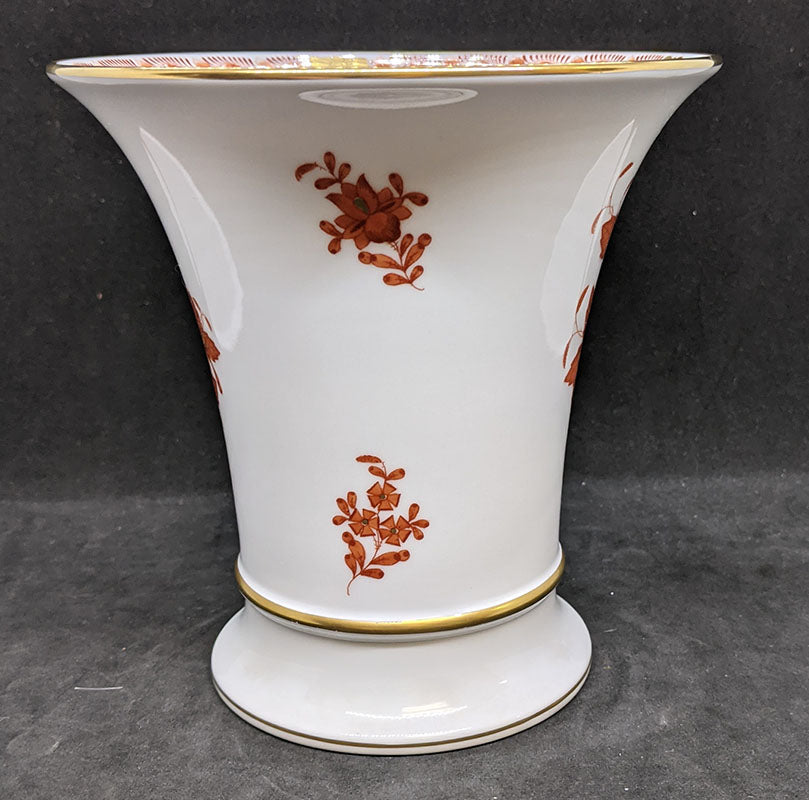 Thank you for viewing our listing for: HEREND - Fine Bone China - 5460 Vase - Burnt Orange & Gold Detail