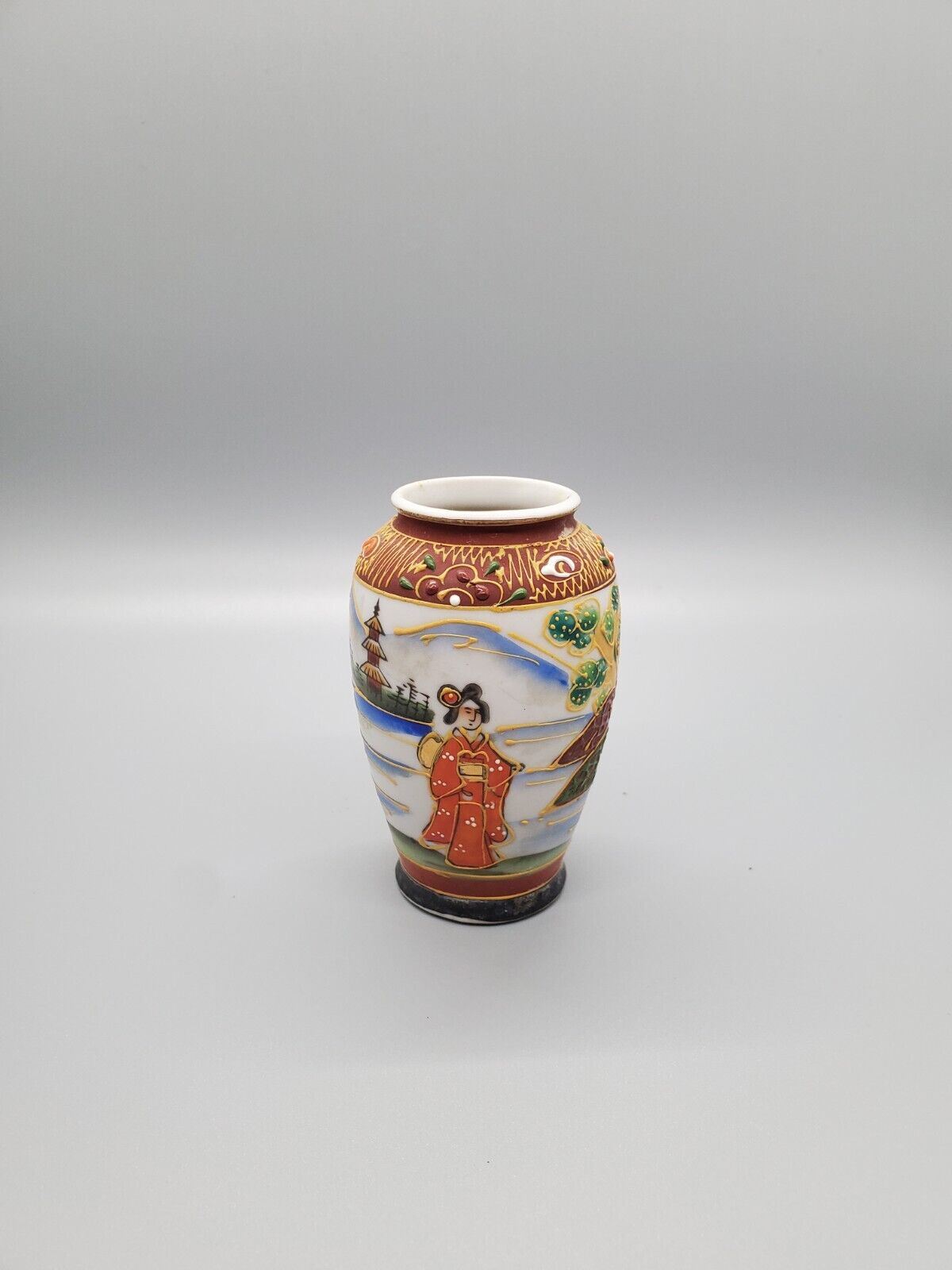 Small Japanese Hand Painted Vase - Red Mark on Bottom - Late 1890's / 1900's