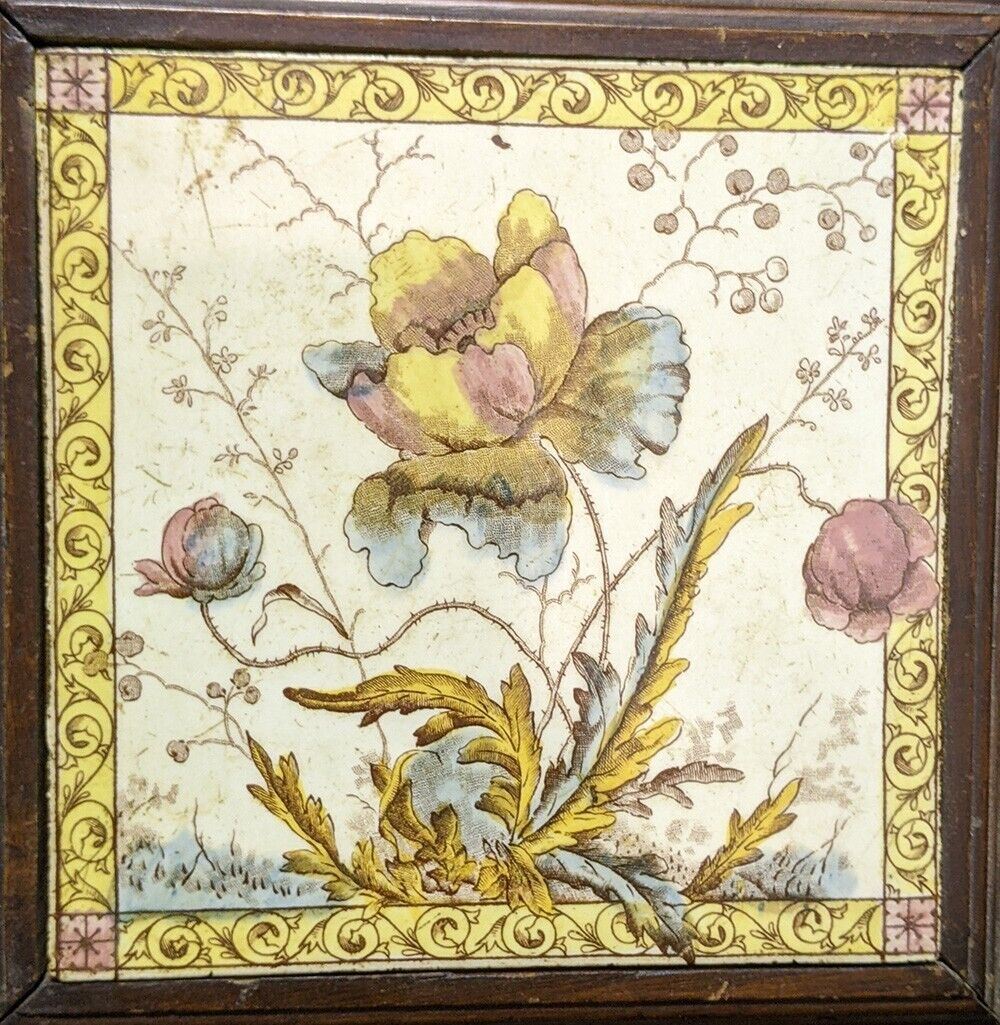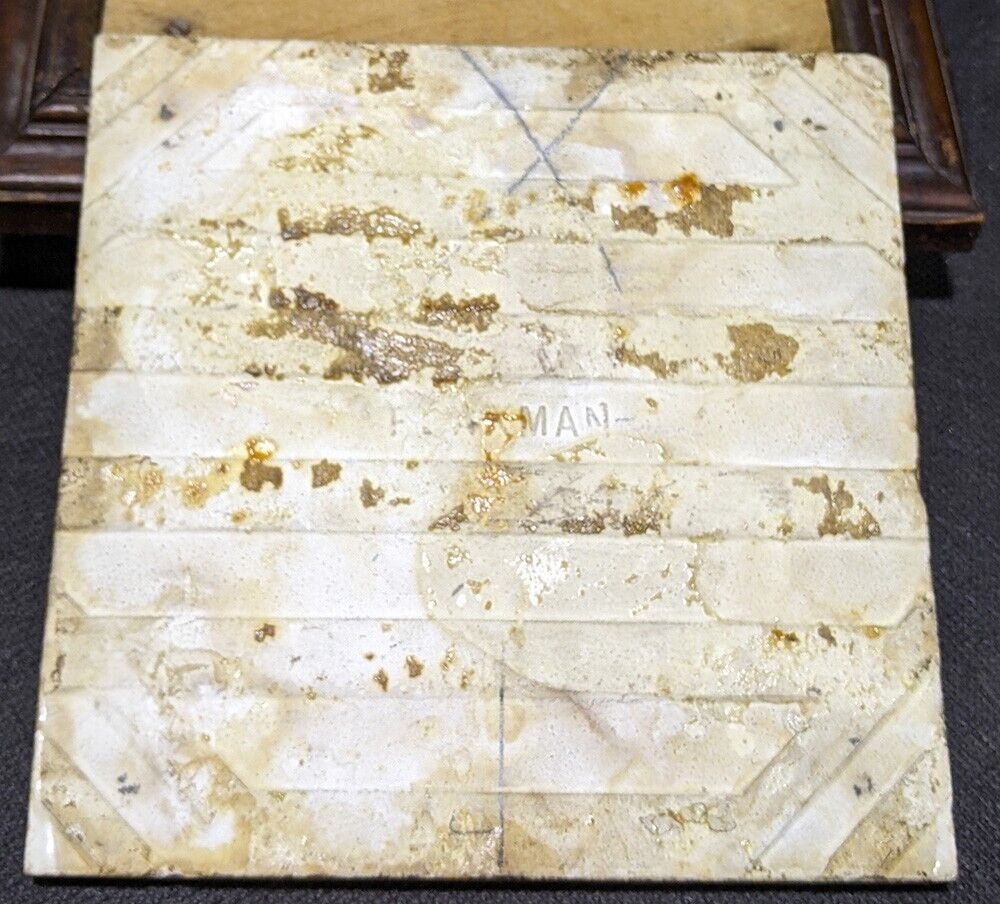Vintage Ceramic Tile by Flaxman -- Footed Wood Base