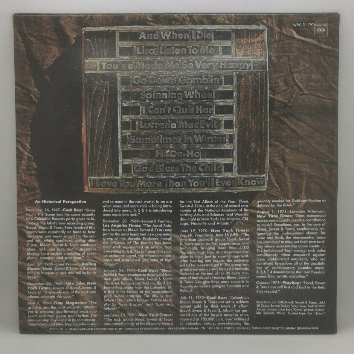 Thank you for viewing our listing for: Blood, Sweat & Tears Greatest Hits by Blood, Sweat & Tears (1972, 12" Vinyl)