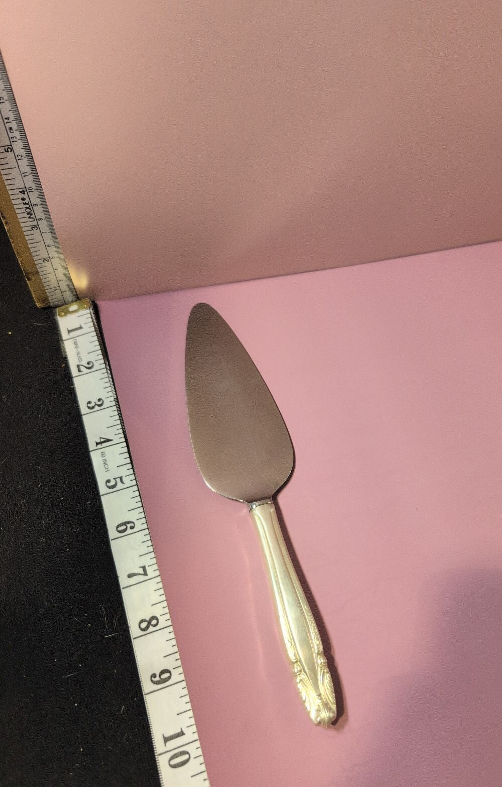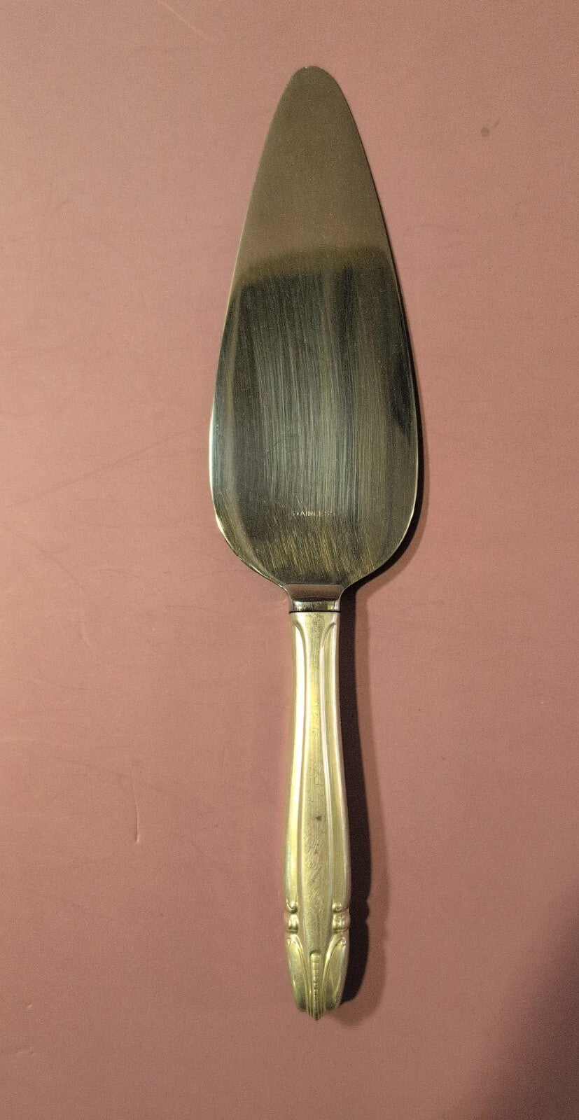 Sterling Silver Handle. Other part is stainless steel. Vintage stainless steel pie or cake server with an ornate handle. Ideal for serving desserts at gatherings or as a collectible piece. Shows some signs of wear consistent with age.