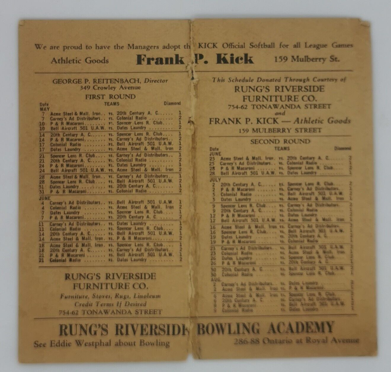 Thank you for viewing our listing on: 1940 Buffalo Niagara Frontier Softball League Schedule