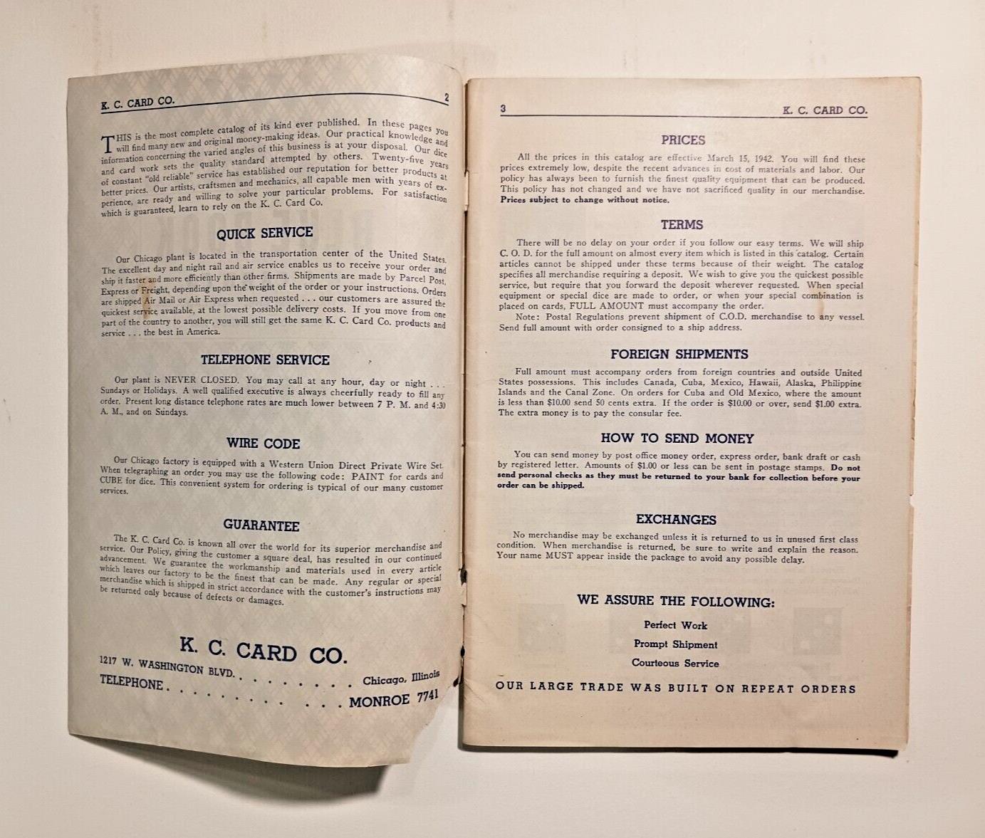Thank you for viewing our listing on: 1942 Blue Book K.C. Card Co. Gambling Supplies Catalogue w/ inserts