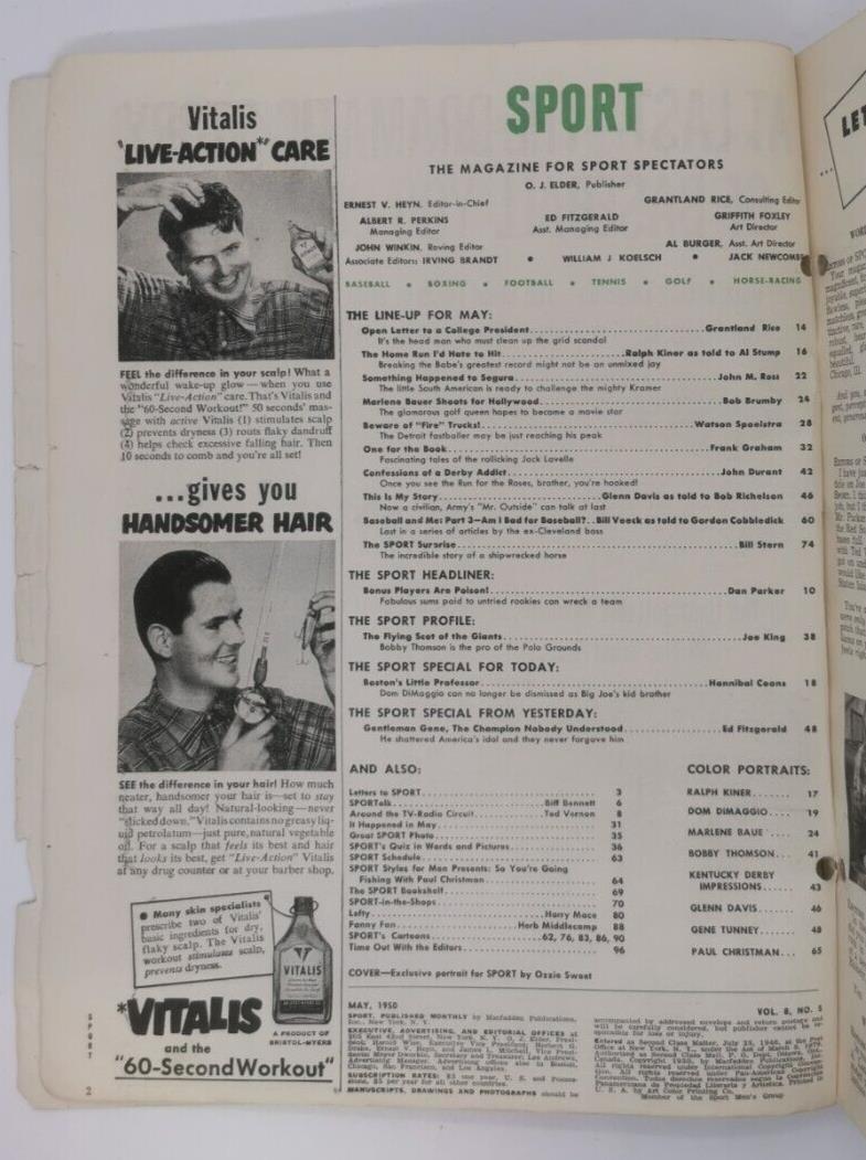 Thank you for viewing our listing for: 1950 May Sport Magazine Ralph Kiner On Cover