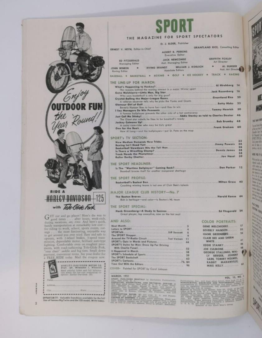 1951 March Sport Magazine "What's Happening To Hockey?" Issue