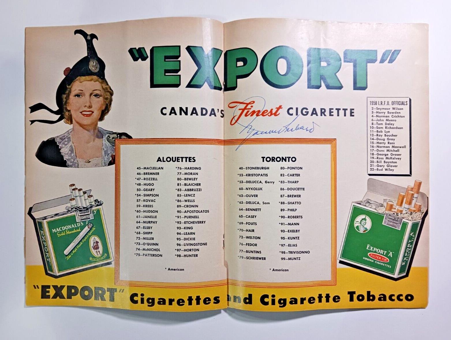 1958 Alouettes vs Toronto Argonauts CFL Game Program Signed by Maurice Richard