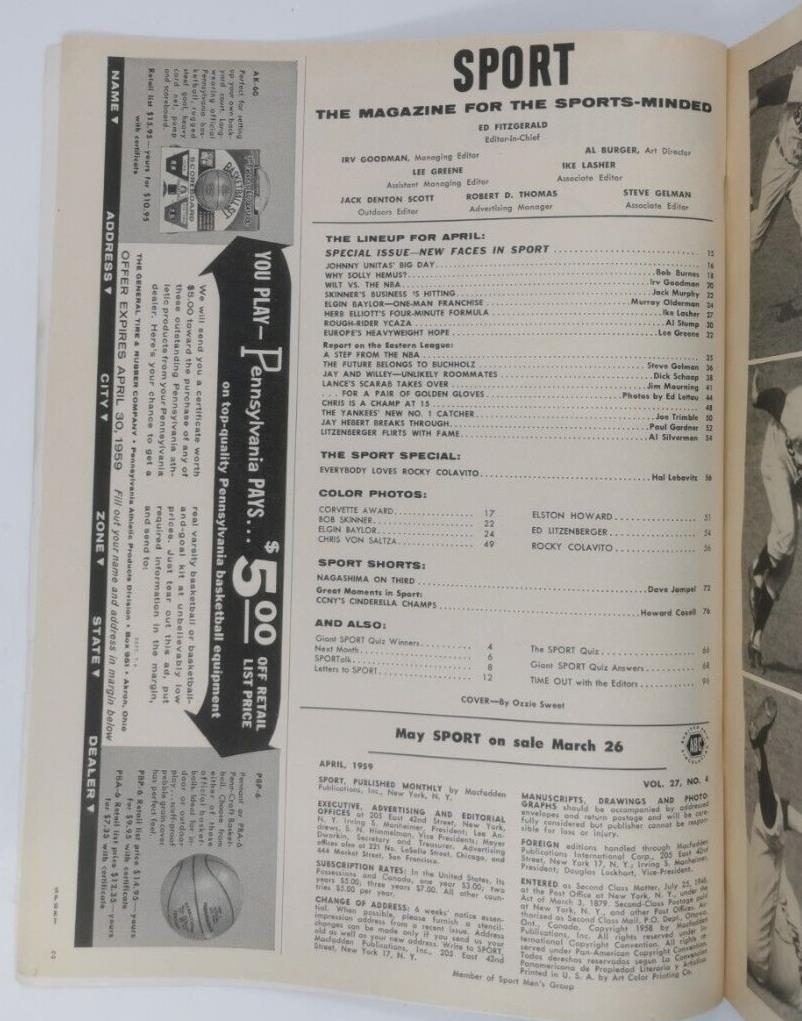 Thank you for viewing our listing for: 1959 April Sport Magazine Rocky Colavito On Cover