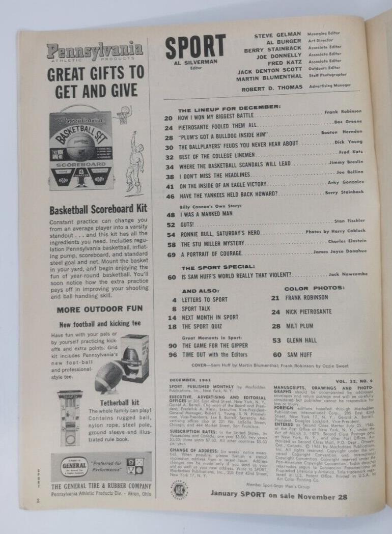 1961 December Sport Magazine Sam Huff's World: Is It Really That Violent? Issue