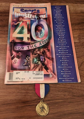Vintage Cycling Medal On Ribbon & Sports Illustrated 40th Anniversary Issue