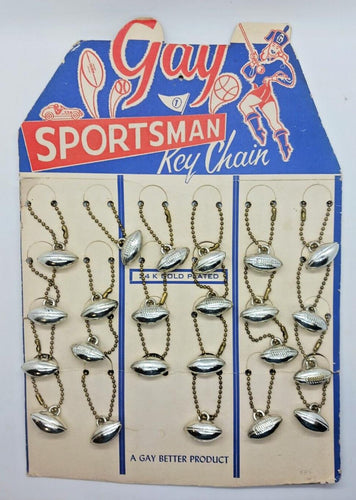Vintage 1950's Gay Sportsman 24K Gold Plated Football Key Chain Display 23/24