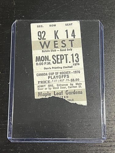 Sept 13 1976, CAN Cup Final - Canada v Czech Ticket Stub from Maple Leaf Gardens