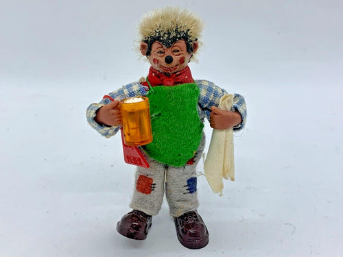• Vintage Steiff Peter Hedgehog Bar-Keep w/ Pint, Towel, Apron 3.5in Figurine RARE