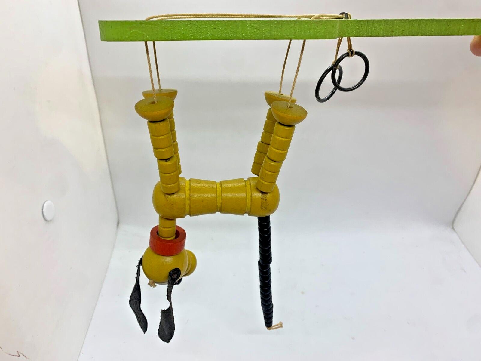 Vintage Fisher Price Pluto Wood Puppet Doll Pop Up Kritter String Toy w Paddle