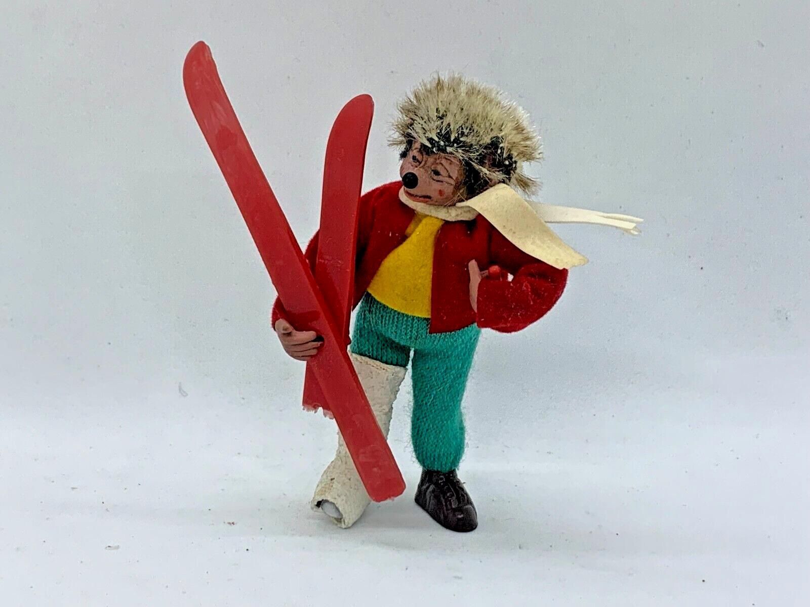 Vintage Steiff Peter Hedgehog Skier w/ Leg-Cast 3.5in Figurine RARE