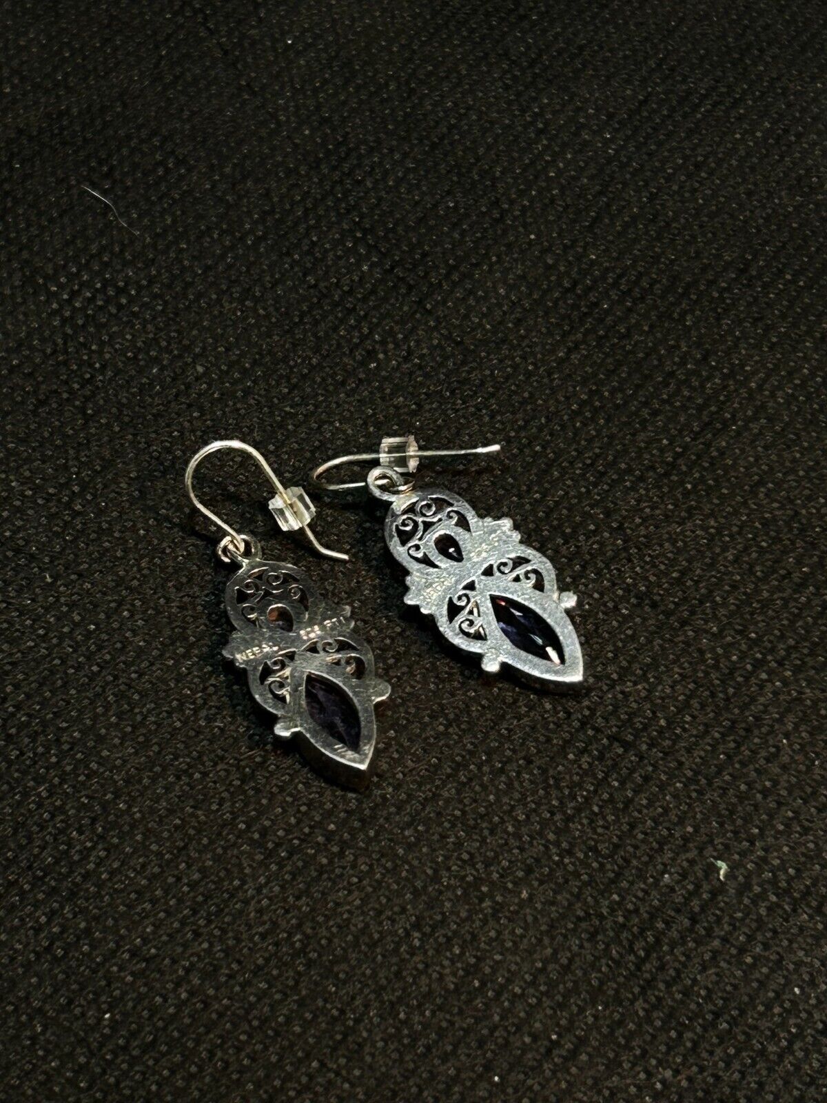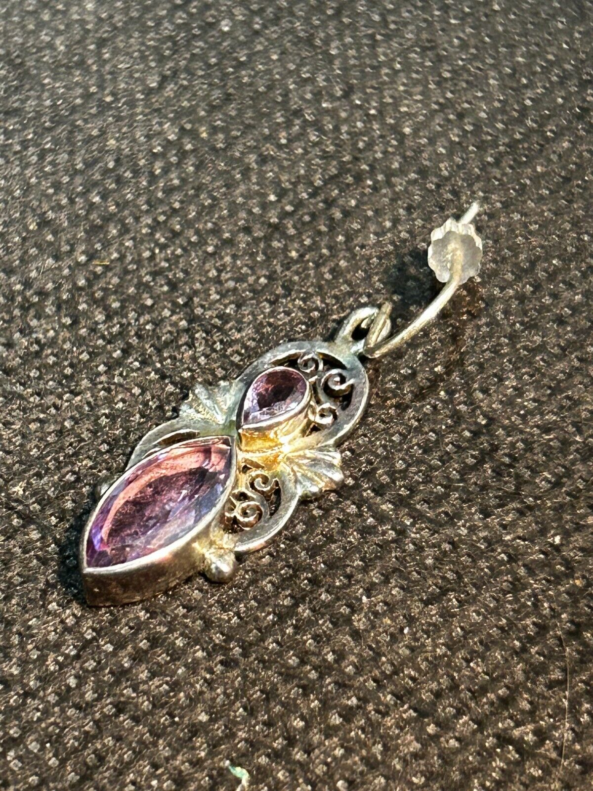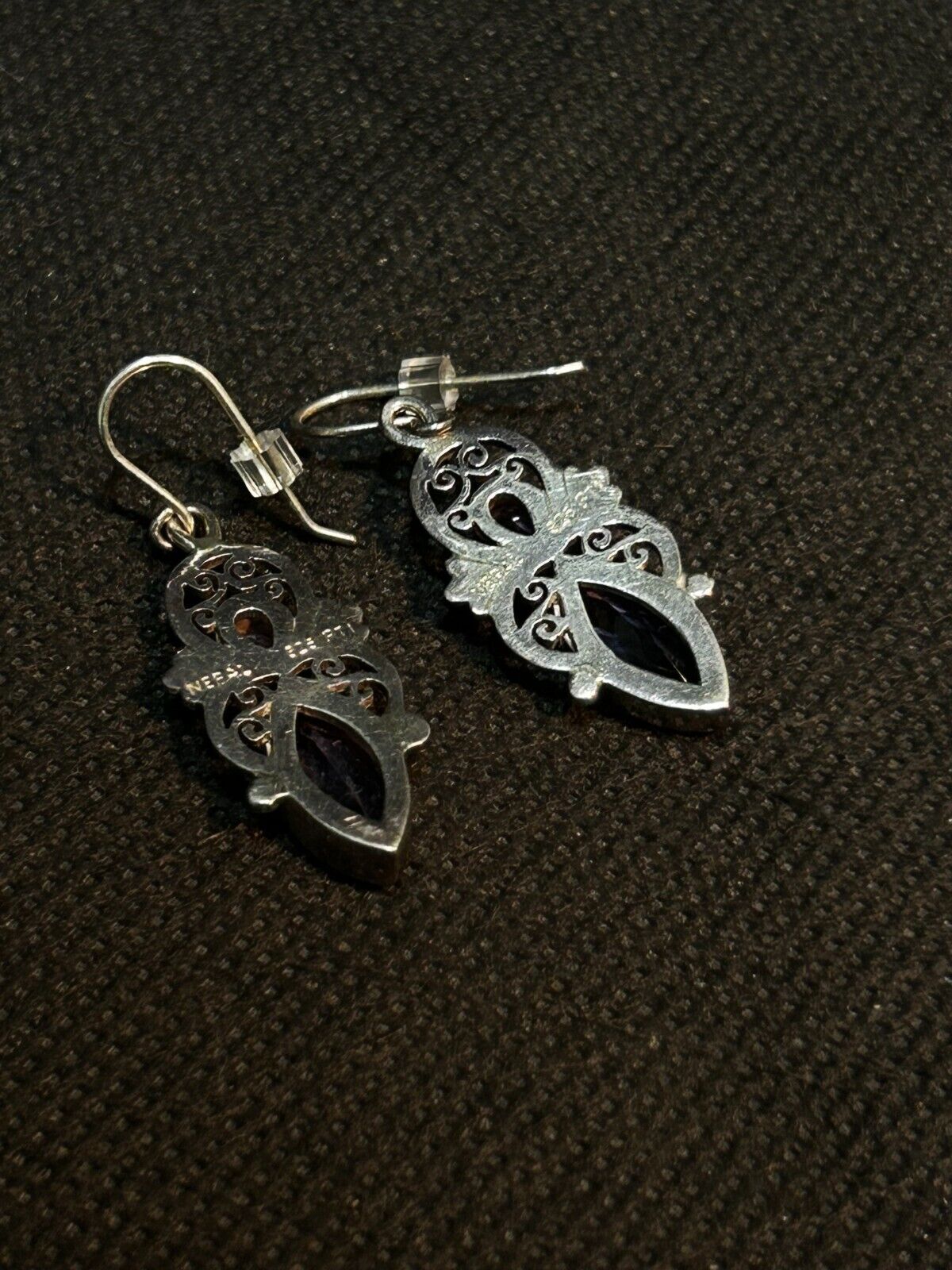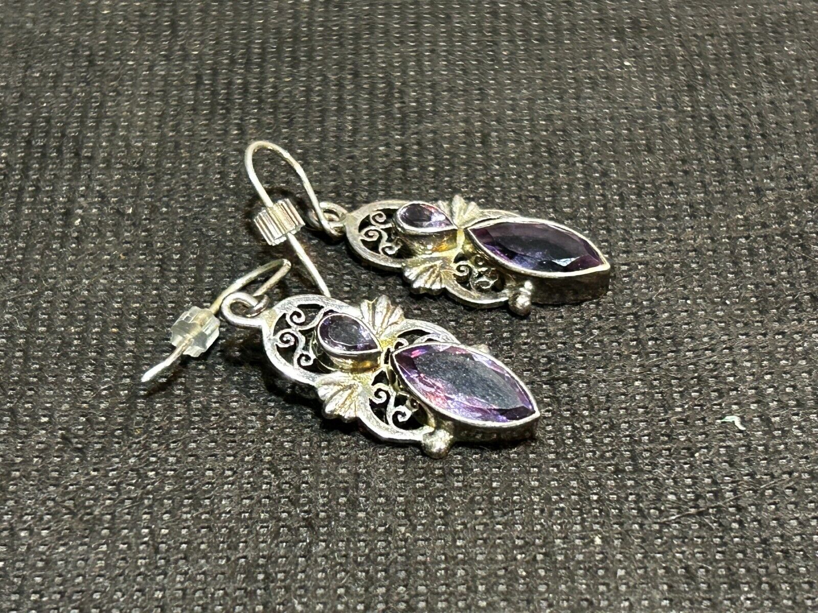 Thank you for viewing our listing for: Amethyst Dangly Sterling Silver Earrings made in Nepal